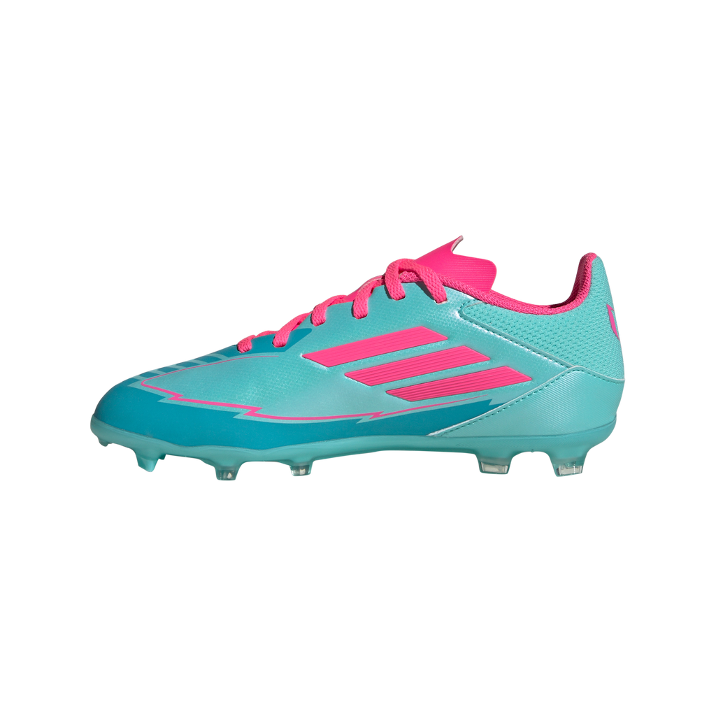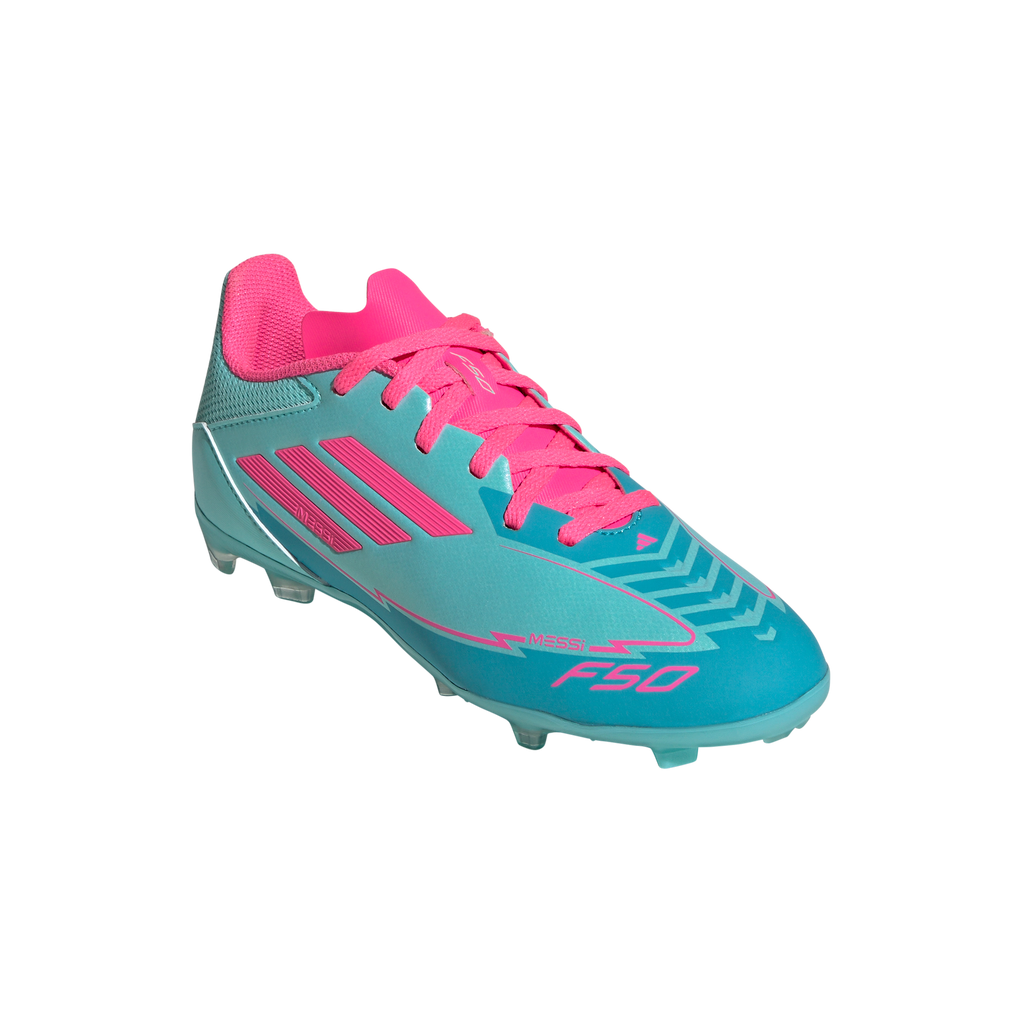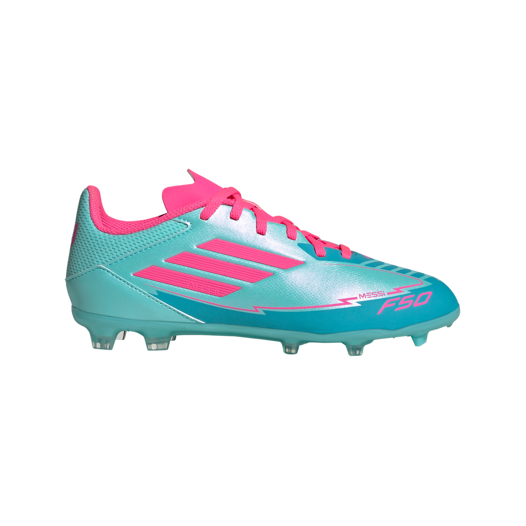 Legendary F50 pace. Mesmerising Messi skills. Part of a range built to match the GOAT's on-field preferences, these juniors' adidas League football boots have a flexible HybridTouch upper with a comfortable synthetic tongue. The versatile outsole offers propulsion on firm ground and artificial grass.