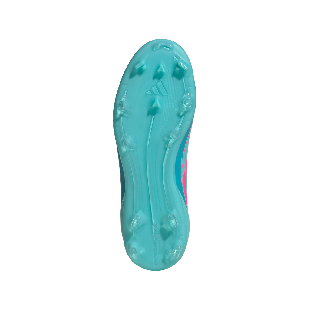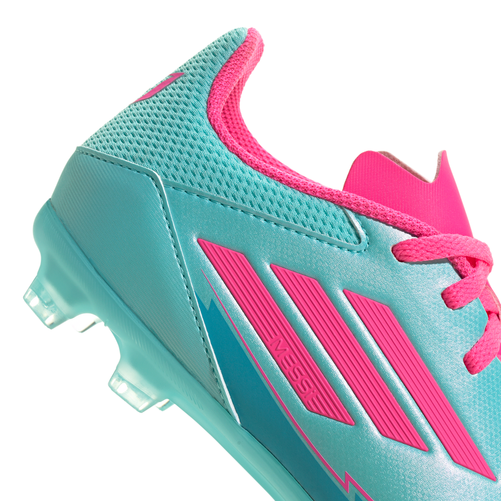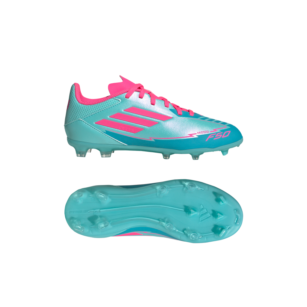 Legendary F50 pace. Mesmerising Messi skills. Part of a range built to match the GOAT's on-field preferences, these juniors' adidas League football boots have a flexible HybridTouch upper with a comfortable synthetic tongue. The versatile outsole offers propulsion on firm ground and artificial grass.
