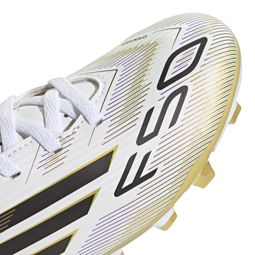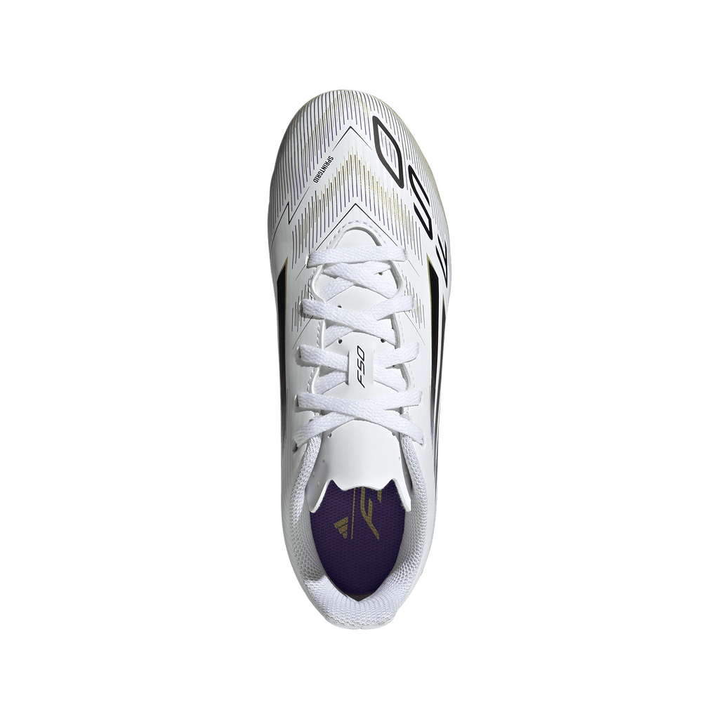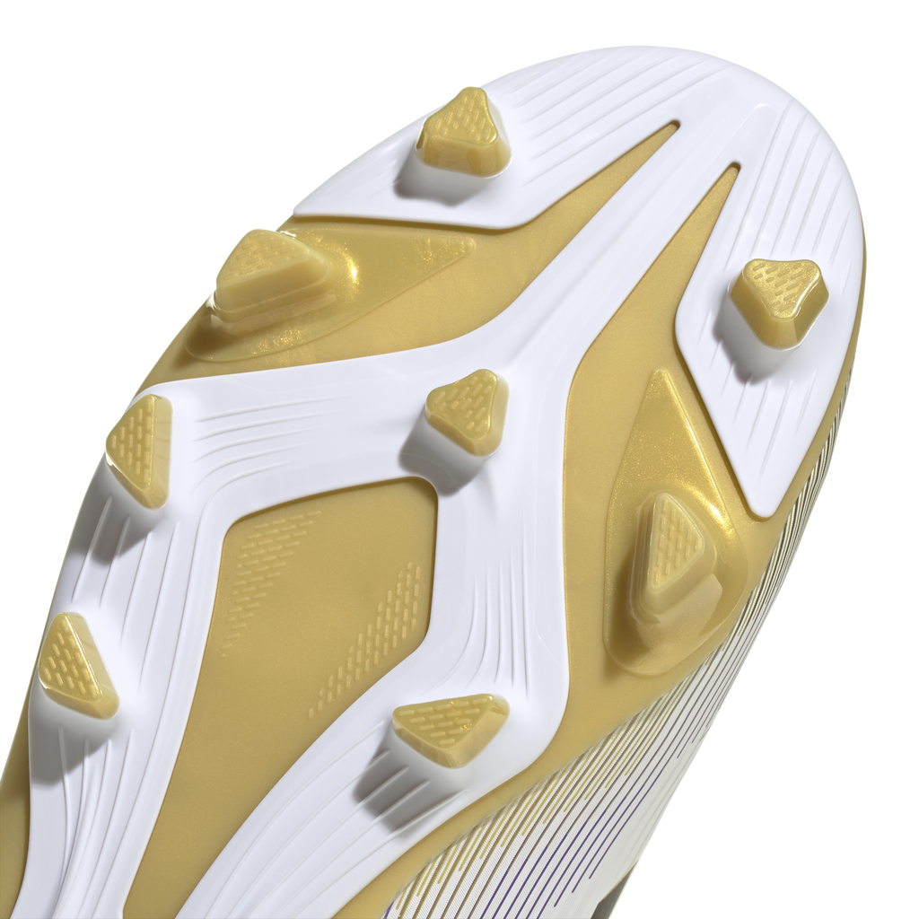 Find your fast to truly express yourself on the field. Feel the rush in adidas F50 boots engineered for speed. These juniors' Club football boots keep you comfortable on the move with a lightweight synthetic upper and perforated tongue. Turn them over and you'll find an outsole that supports speedy play on firm ground and artificial grass pitches.