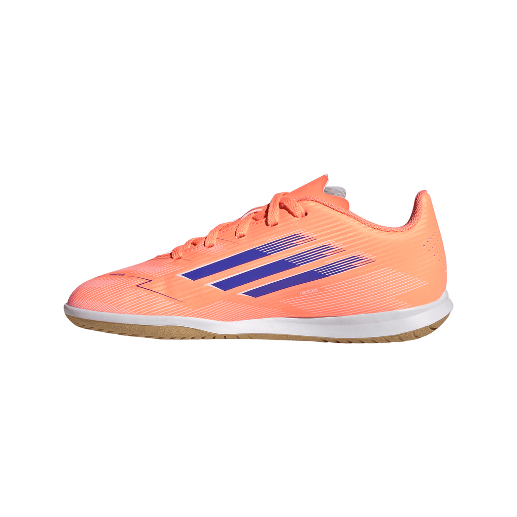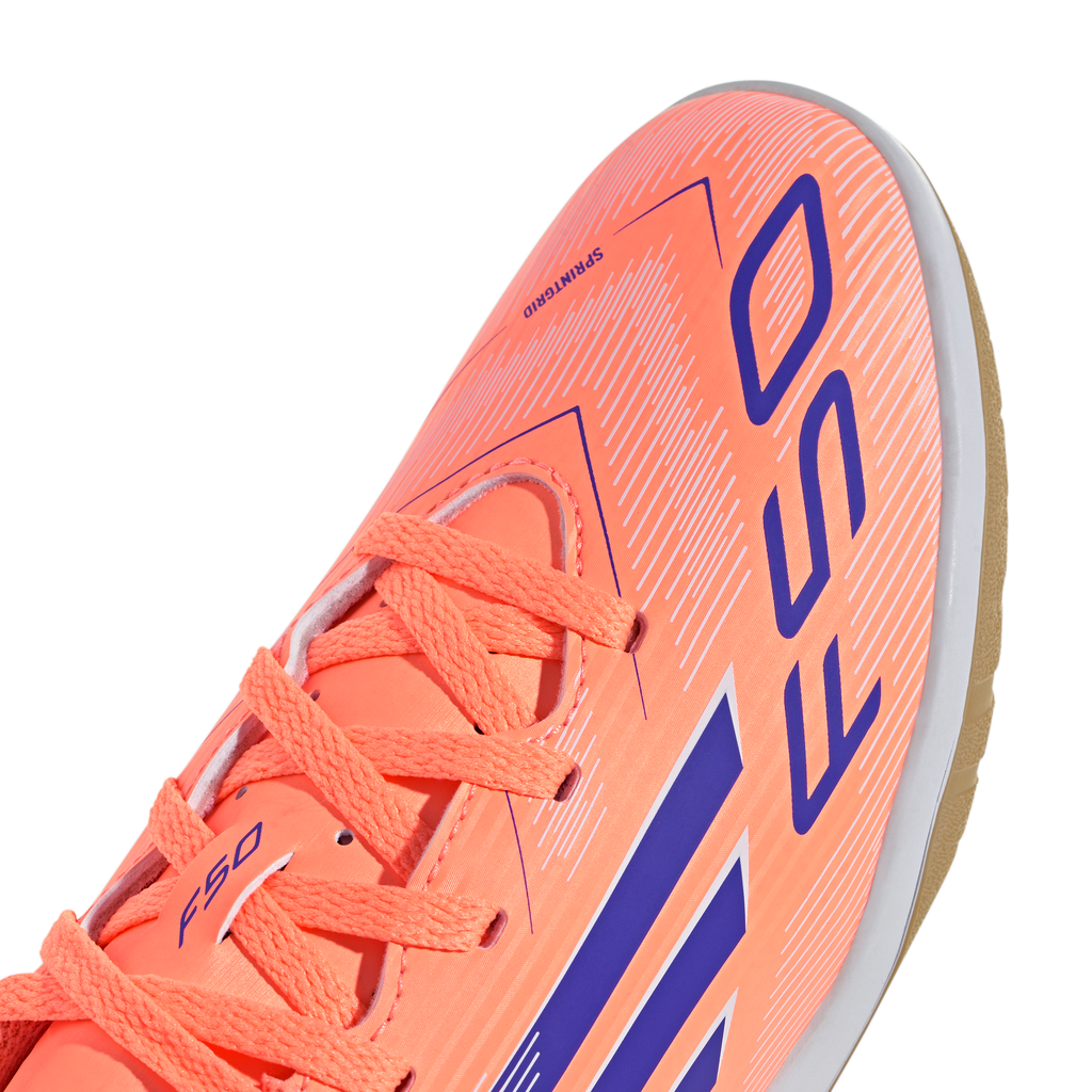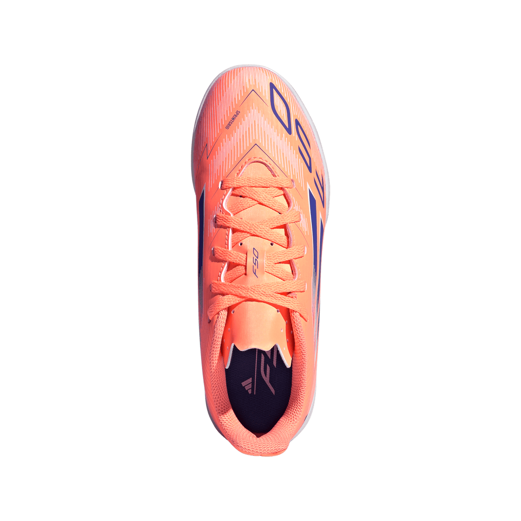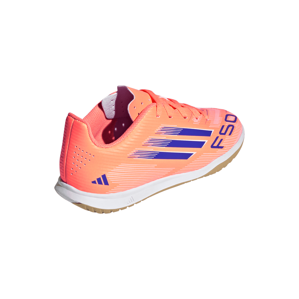 Find your fast to truly express yourself on the court. Feel the rush in adidas F50 cleats engineered for speed. These juniors' Club soccer cleats keep you comfortable on the move with a lightweight synthetic upper and perforated tongue. Turn them over and you'll find a grippy rubber outsole that supports speedy play on flat indoor surfaces.