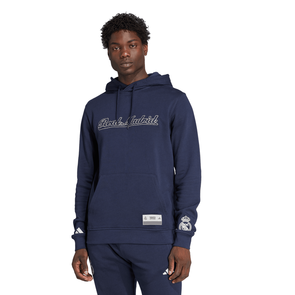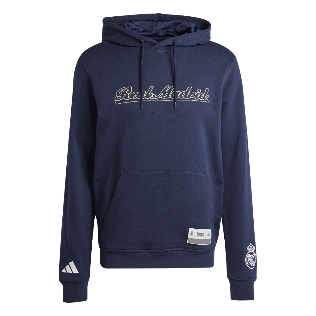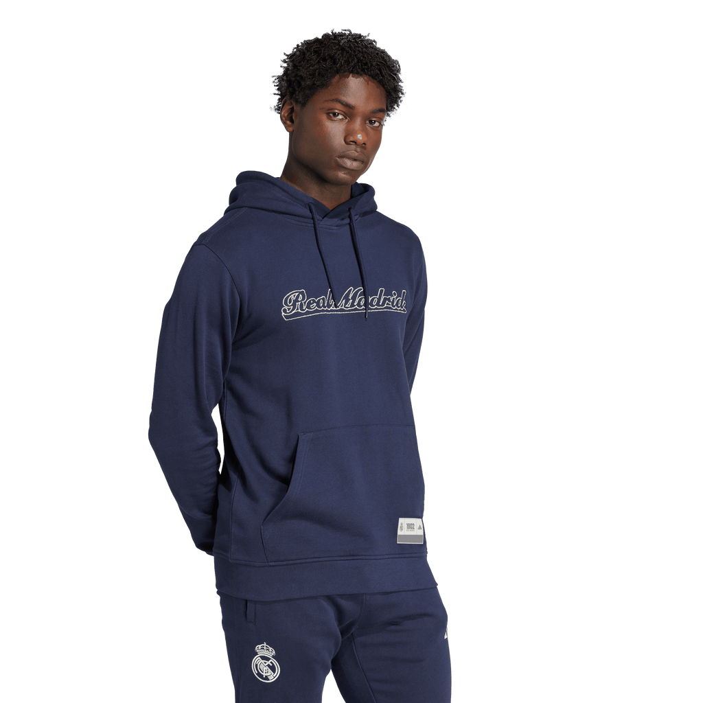 A football hoodie that throws out baseball vibes. Perfect for casual wear and showing your support for your team, this adidas Real Madrid hoodie is built from soft French terry fabric. Inspired by the look of US sports team uniforms, that stylised team name on the front makes a statement