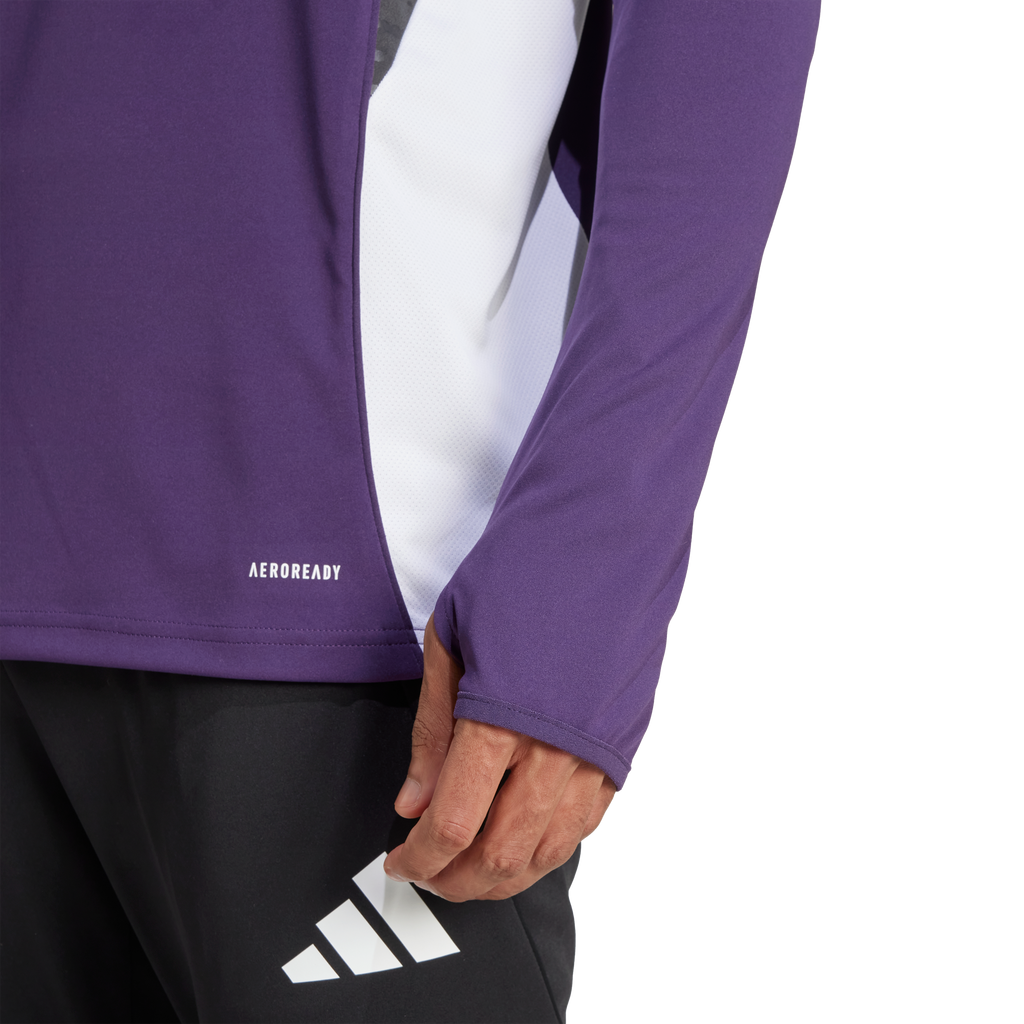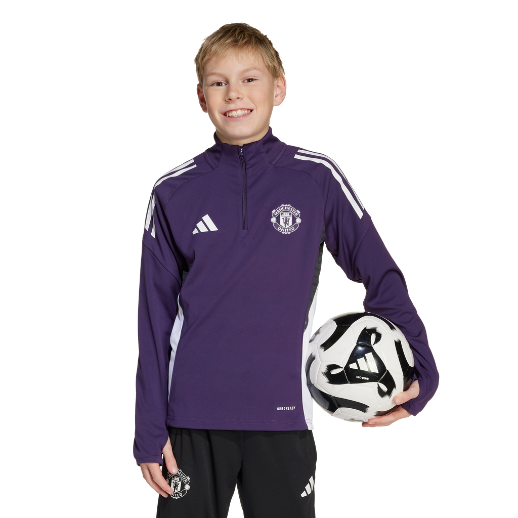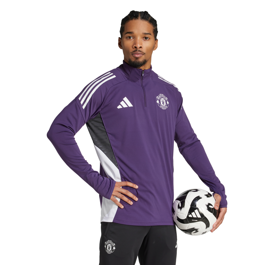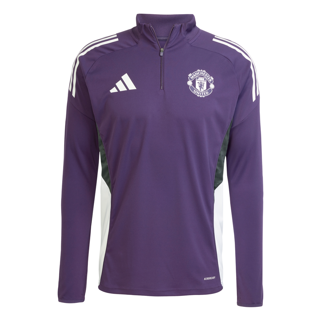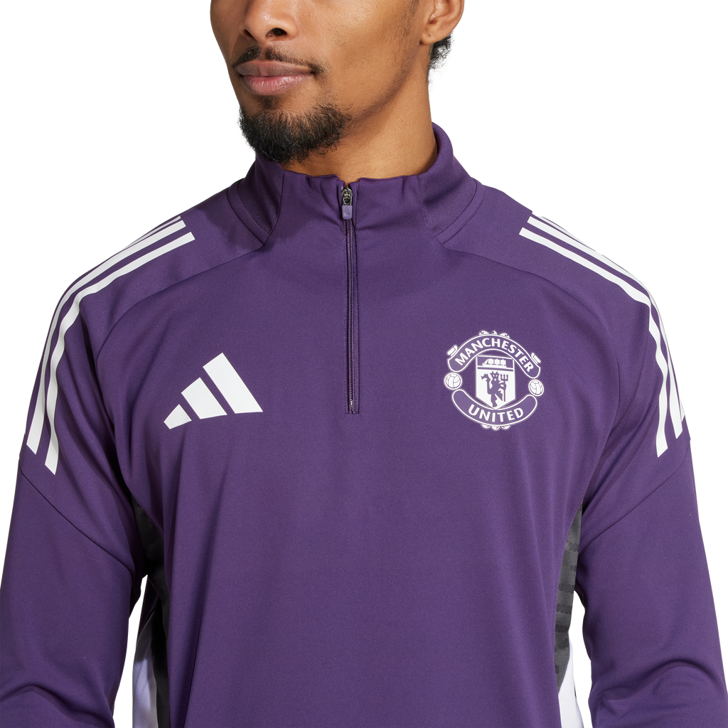 Sporting colours inspired by Manchester United's away shirt, this adidas football training top is part of the kit the squad wear when preparing for league games. Cuff thumbholes let you pull those long sleeves over your hands while the quarter zip allows you to further fine-tune your coverage. And there's no need to worry about moisture — AEROREADY will make it a thing of the past.