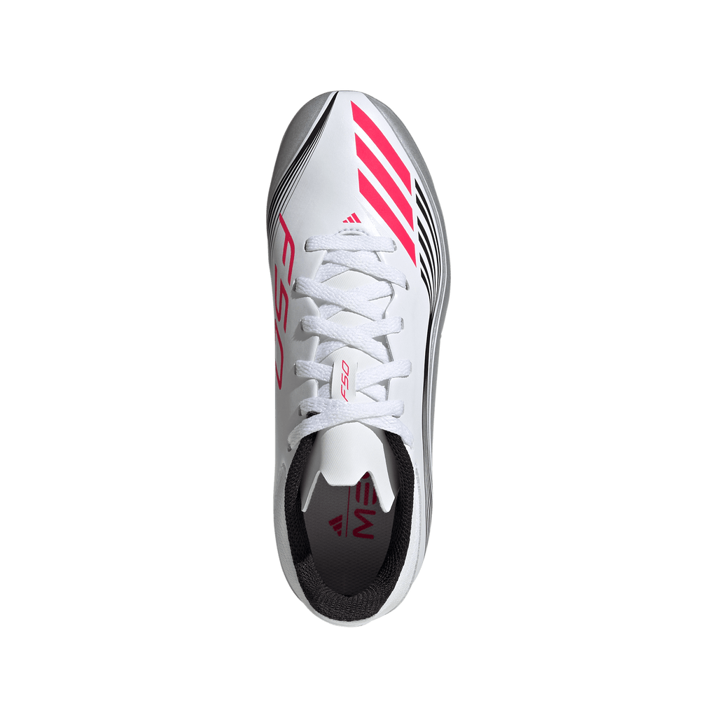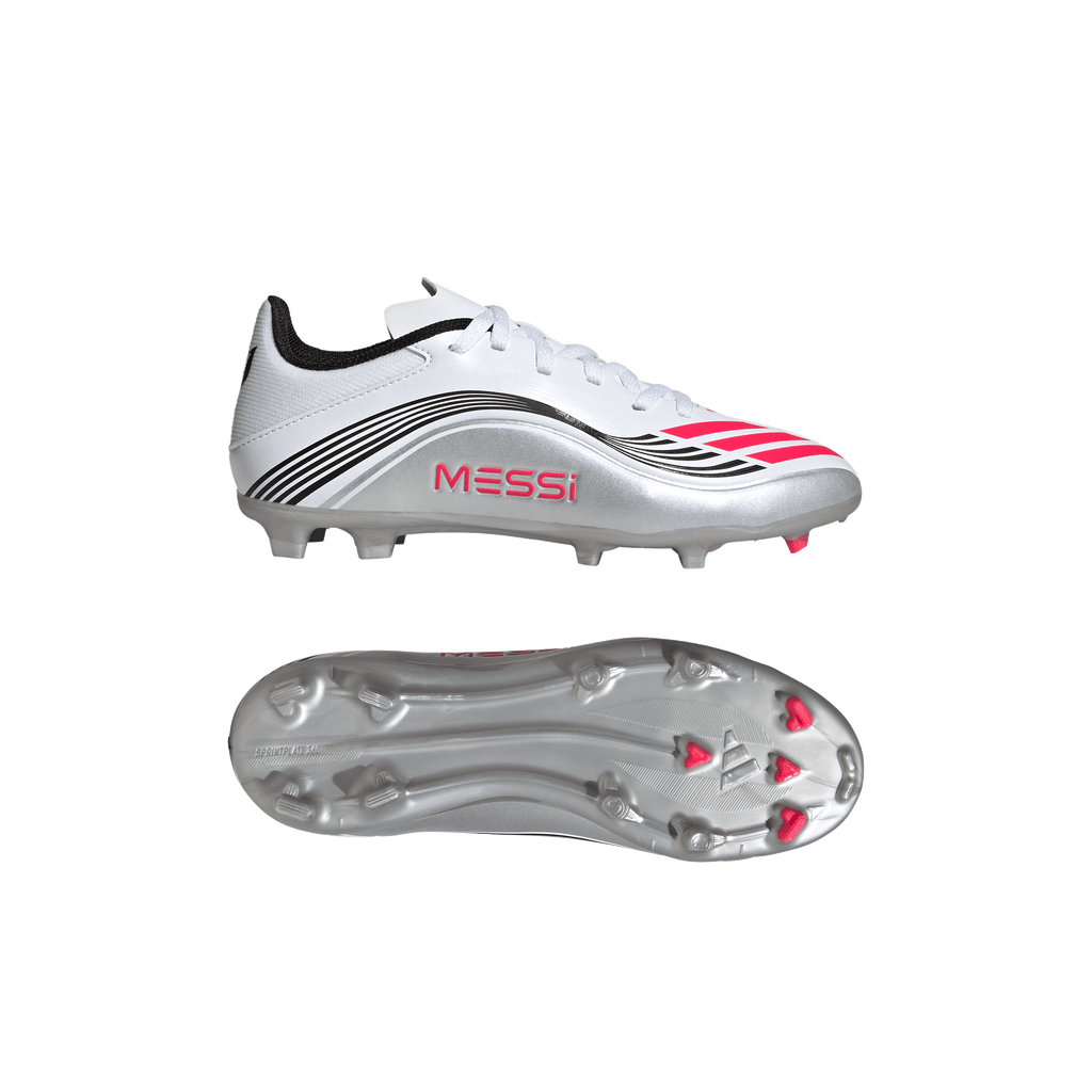 Lightweight F50 cleats for showing non-stop Messi skills on multiple surfaces.
