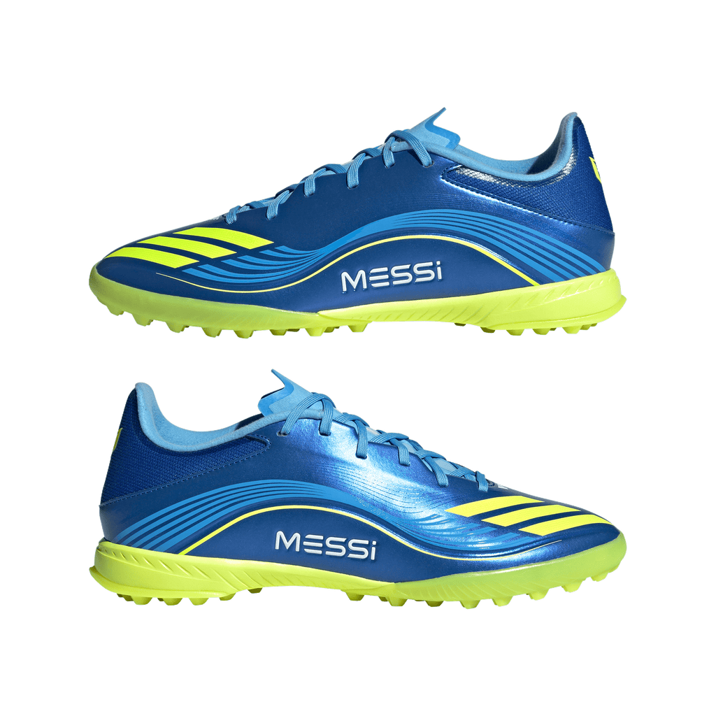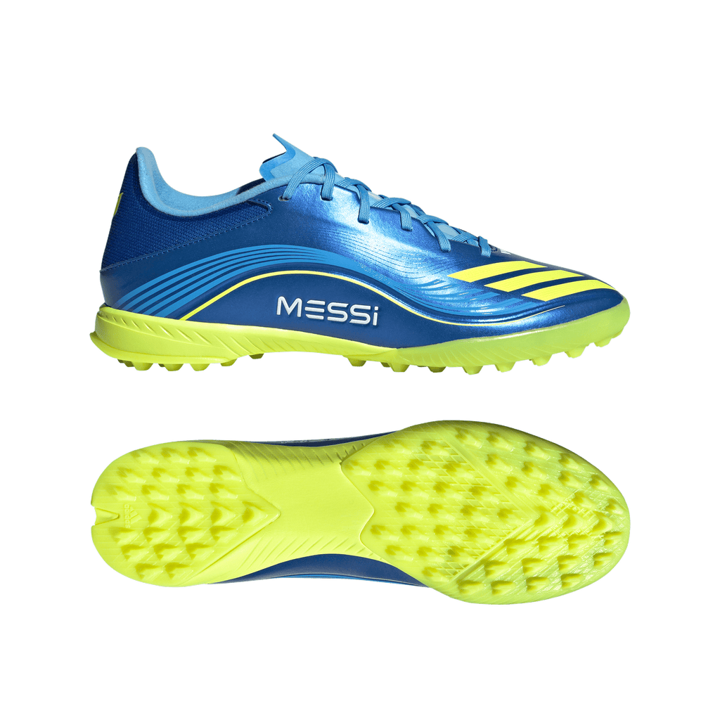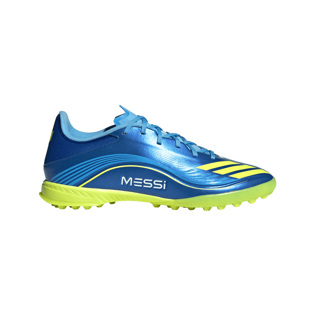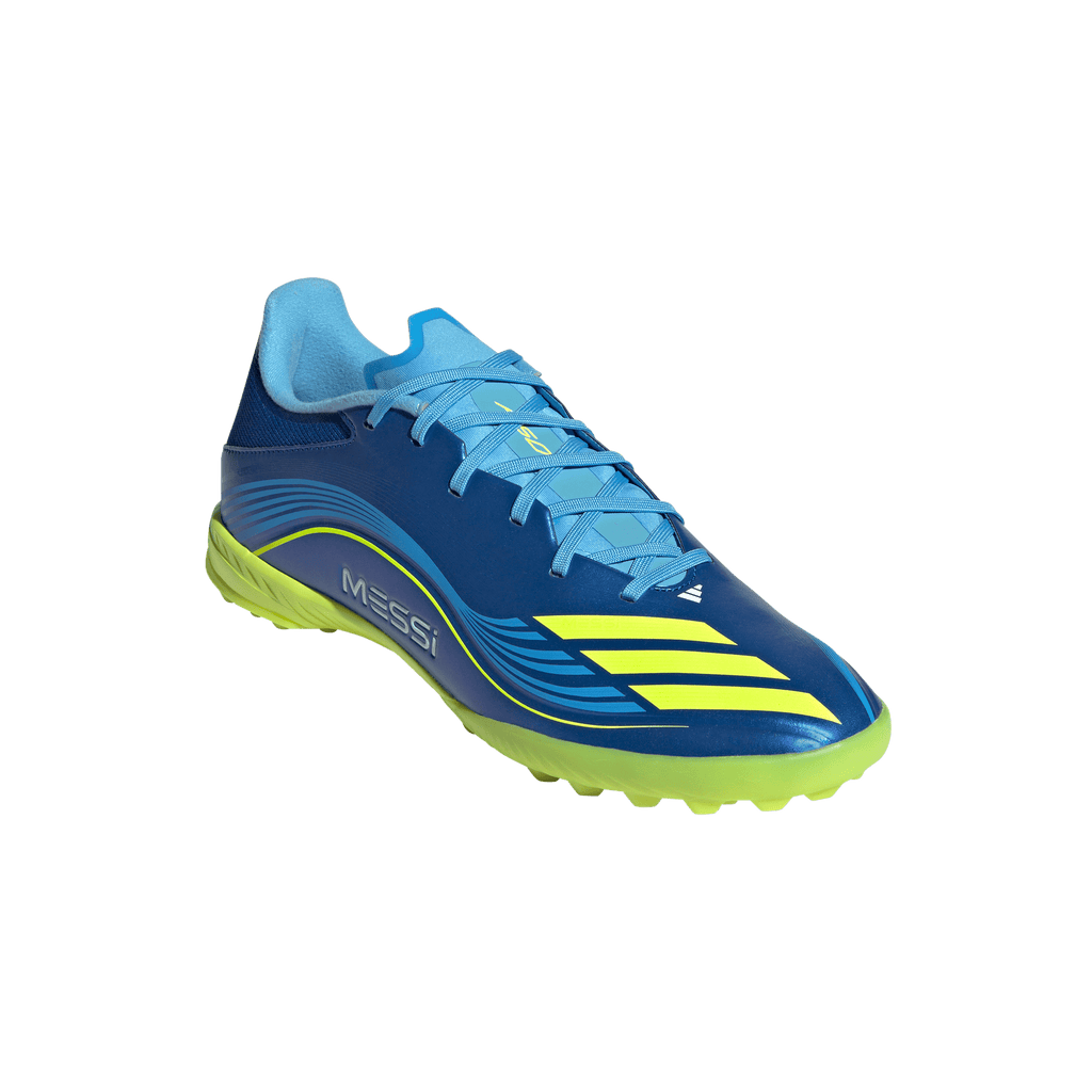 Engineered for speed, tuned for Lionel Messi. These adidas League football boots are part of a collection created to match the GOAT's on-pitch requirements. Delivering a leather-like feel, their flexible HybridTouch upper comes with a comfortable synthetic tongue. The lug rubber outsole is built for quick feet on artificial turf courts.