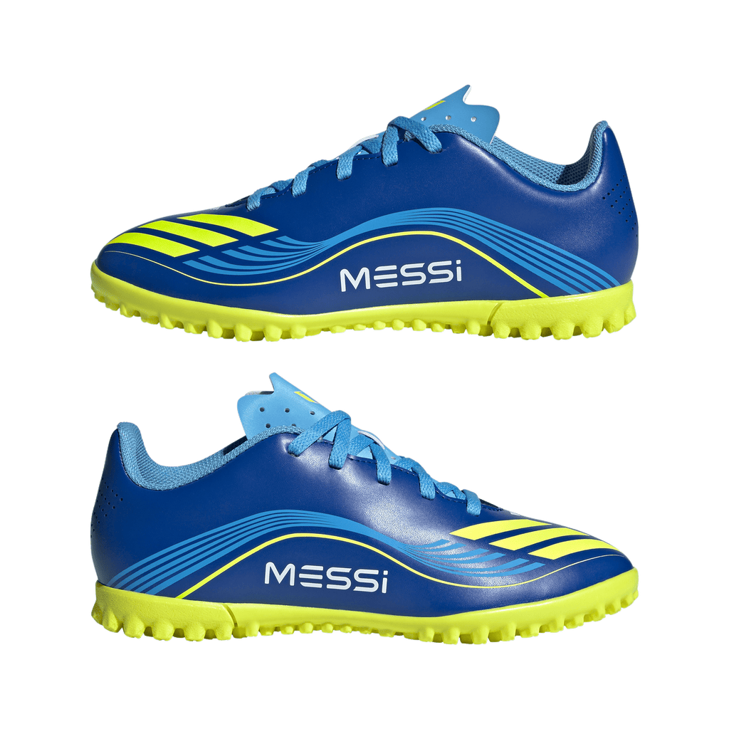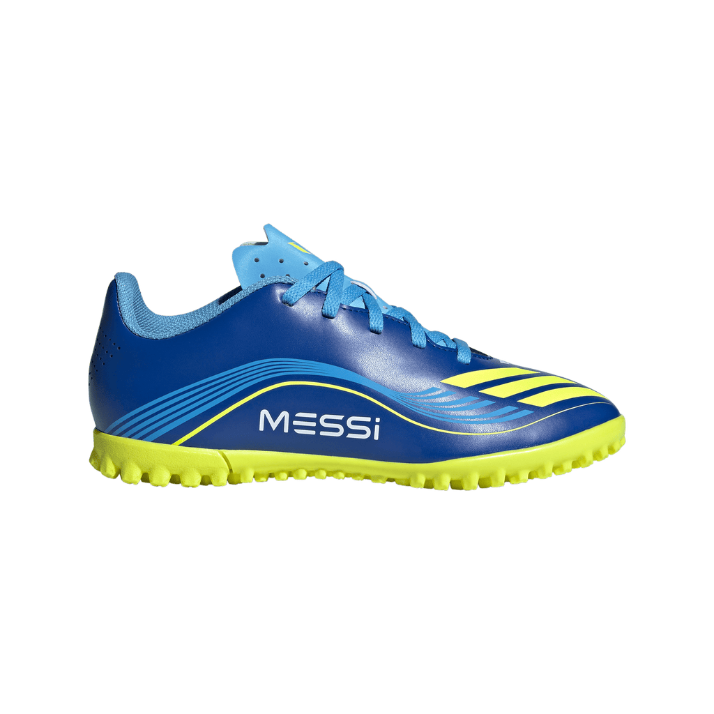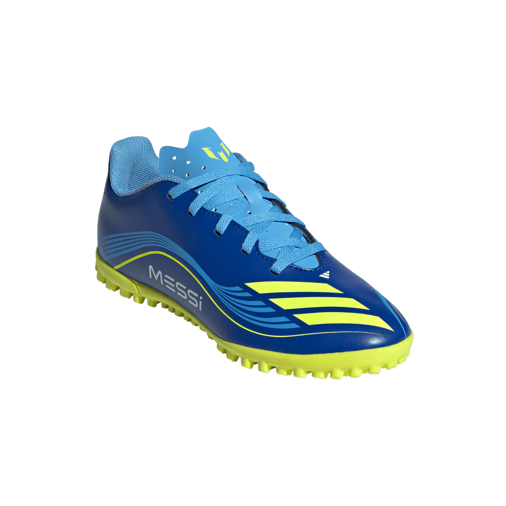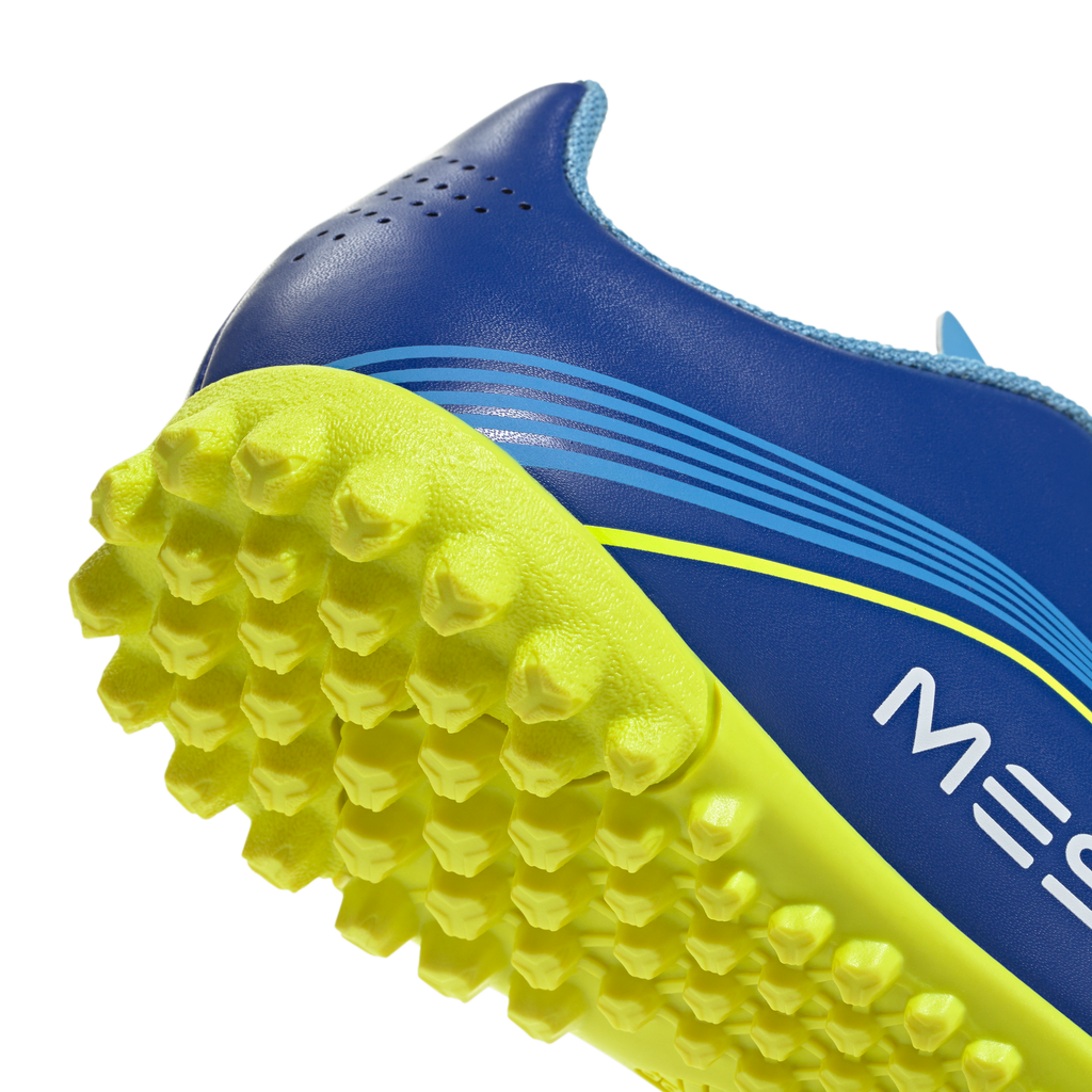 Engineered for speed, tuned for Lionel Messi. These juniors' adidas Club boots are part of a collection created to match the GOAT's on-pitch requirements. The supportive synthetic upper has a lightweight tongue to keep weight and distractions to a minimum. It sits on a lug rubber outsole that'll help you conjure football magic on artificial turf courts.