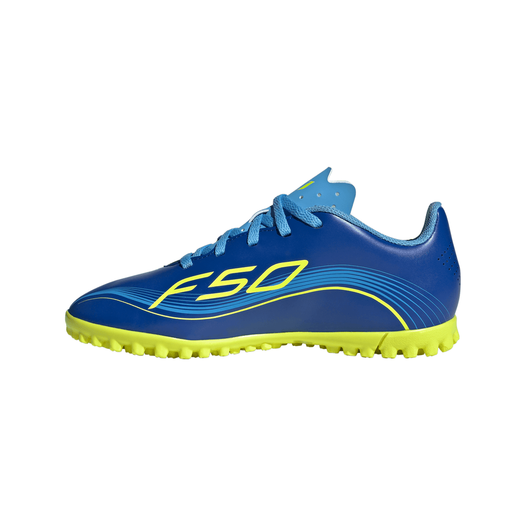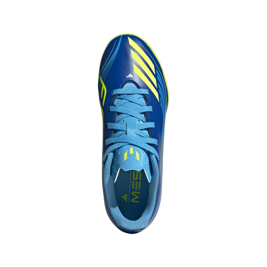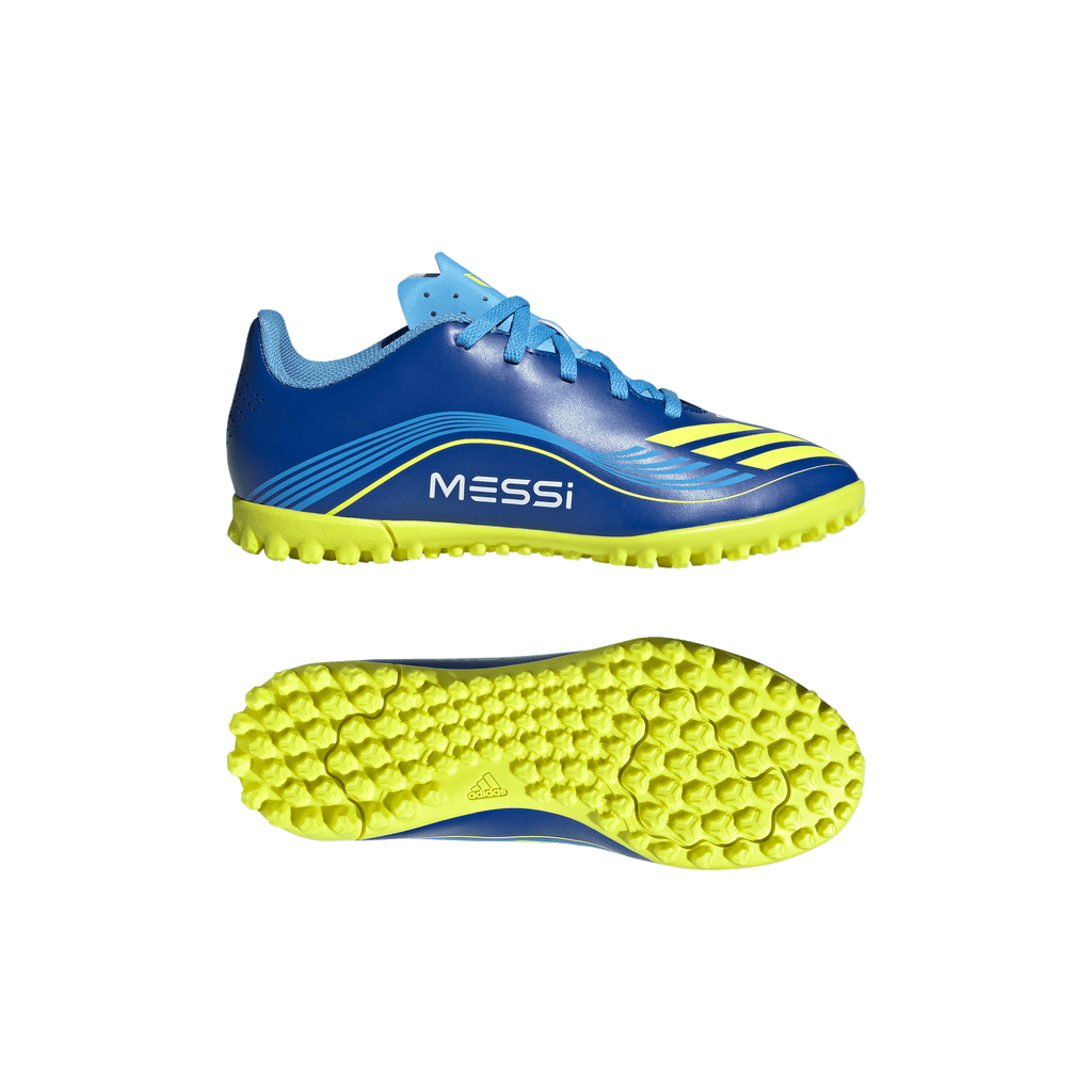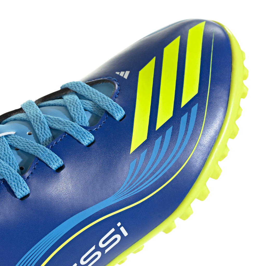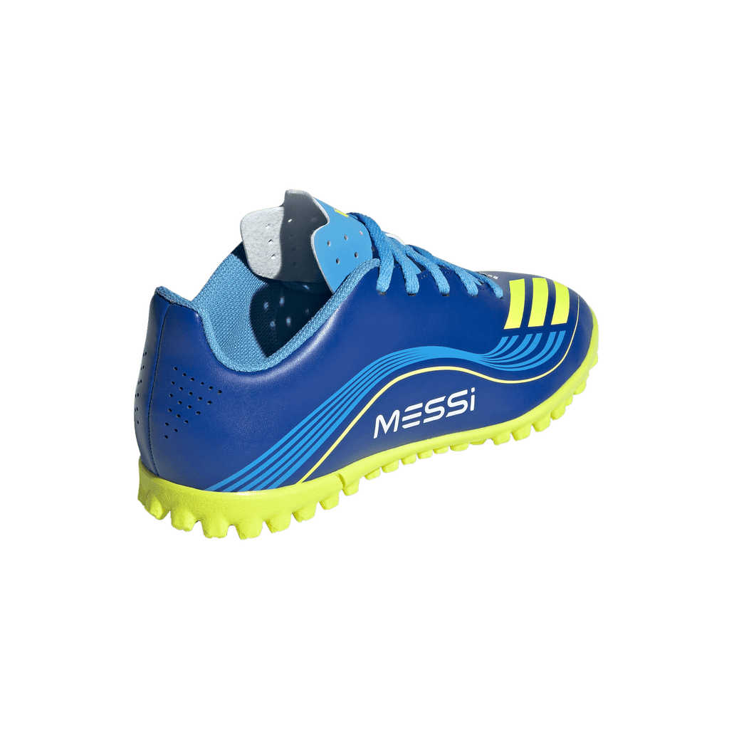 Engineered for speed, tuned for Lionel Messi. These juniors' adidas Club boots are part of a collection created to match the GOAT's on-pitch requirements. The supportive synthetic upper has a lightweight tongue to keep weight and distractions to a minimum. It sits on a lug rubber outsole that'll help you conjure football magic on artificial turf courts.